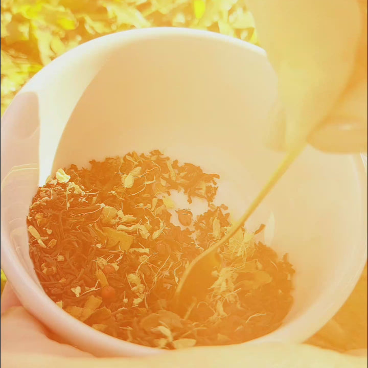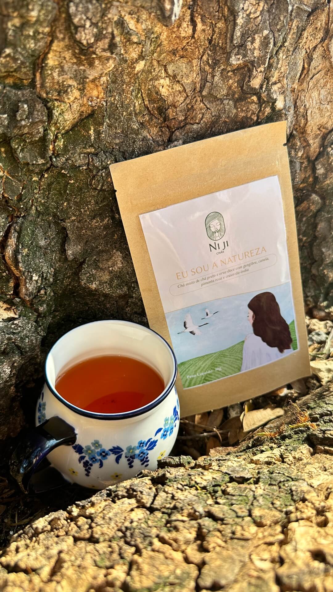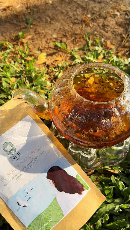 O chá preto, com sua essência rica e encorpada, se encontra com a suavidade da erva-doce, criando uma base sólida e revigorante. O gengibre, em sua picância vibrante, traz a energia da terra, enquanto a canela, com seu toque acolhedor, evoca a saudade das estações que se renovam. A pimenta rosa, com sua leve picância e frescor, e o cravo-da-índia, com sua profundidade aromática, completam esta mistura única, que reverencia a beleza e a sabedoria da natureza. Cada gole é um convite para se conectar com o poder da terra e sentir o equilíbrio entre os elementos em perfeita harmonia.